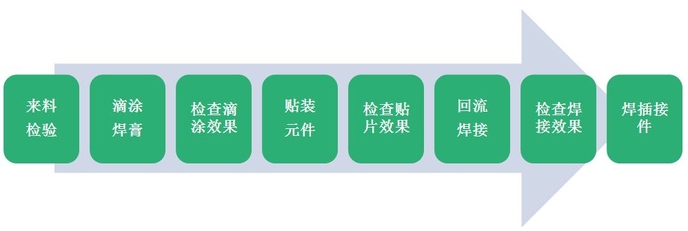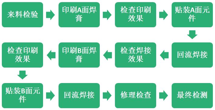 SMT加工雙面混裝批量生產(chǎn)貼裝工藝流程如下: