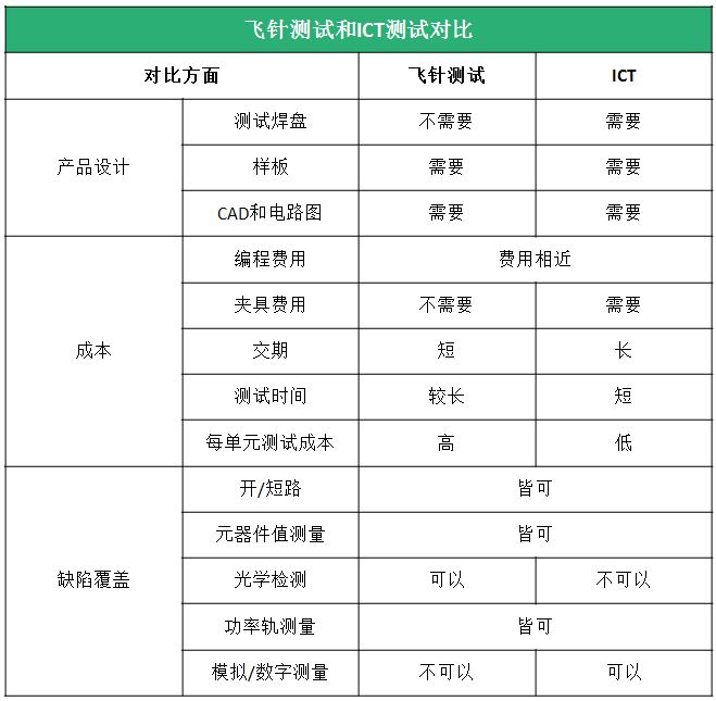 飛針測和ICT測試都能進行非加電測試,但是ICT測試儀還能進行某些功能測試,用以測試焊點情況等,而飛針測試則不能。