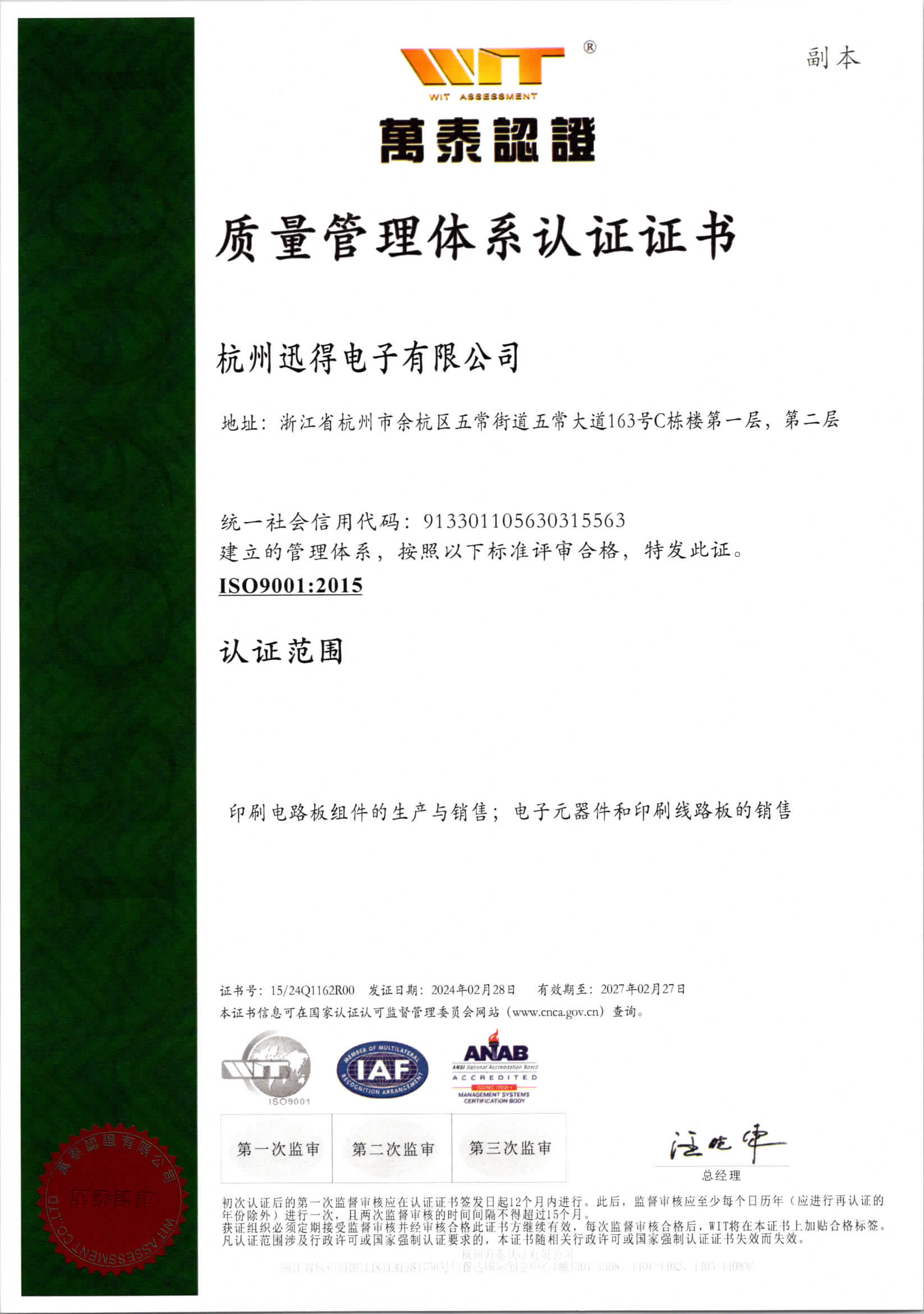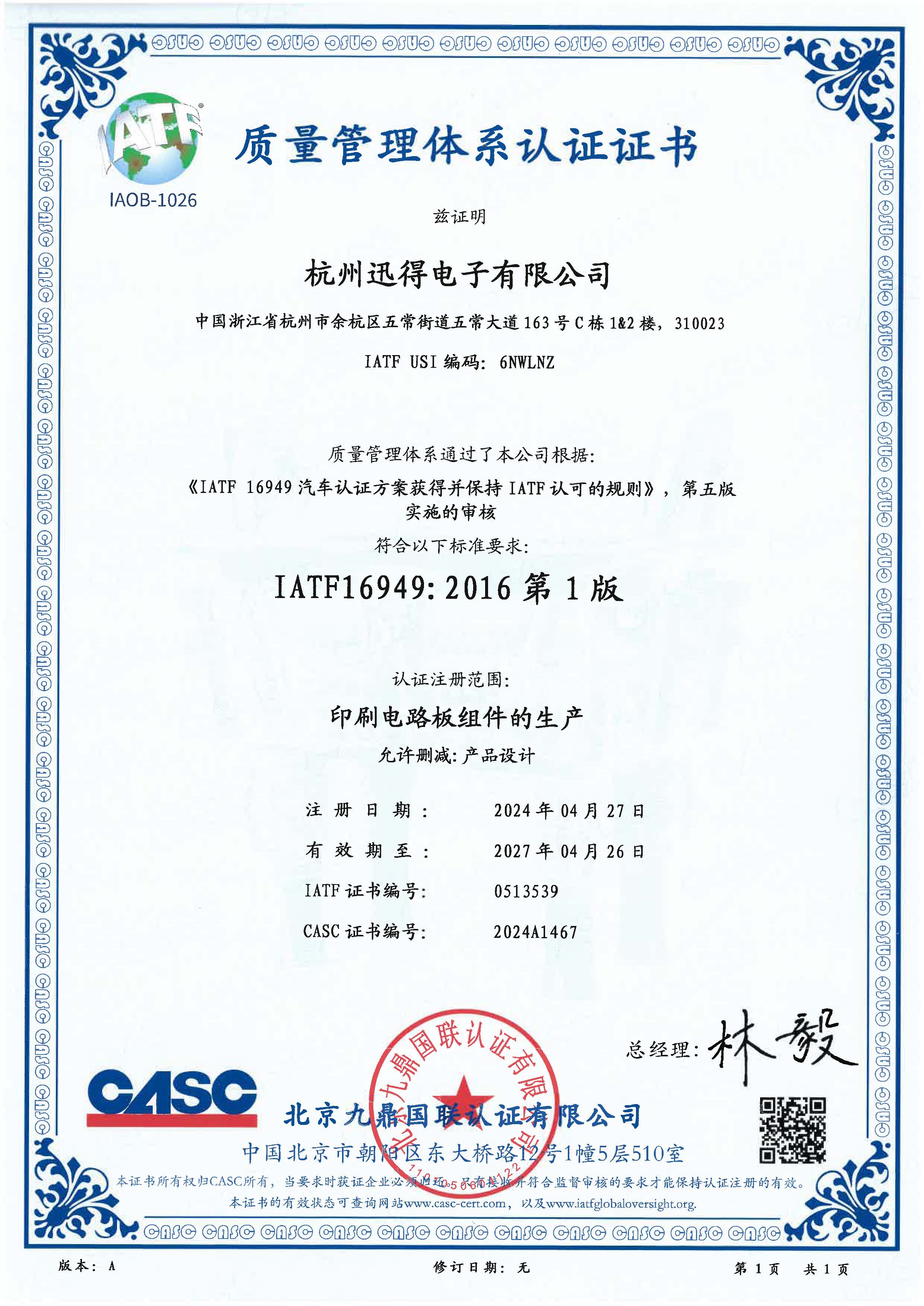 目前,迅得電子已通過ISO9001和IATF16949認證,生產質量具有專業保證。